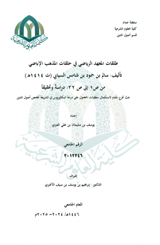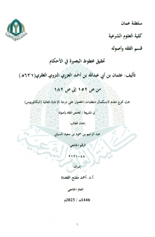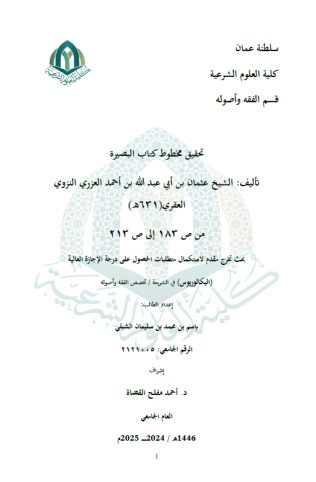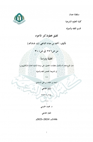 تحقيق جزء من مخطوط كنز الأجواد تأليف: أحمد بن مداد الناعبي (ت 988هـ) من ص 271 إلى ص 300 تحقيقا ودراسة