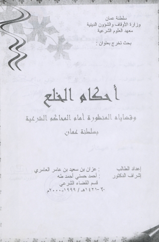 مسقط، سلطنة عمان : معهد العلوم الشرعية، 2000مـ.