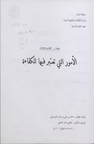 مسقط، سلطنة عمان : معهد العلوم الشرعية، 2001مـ.