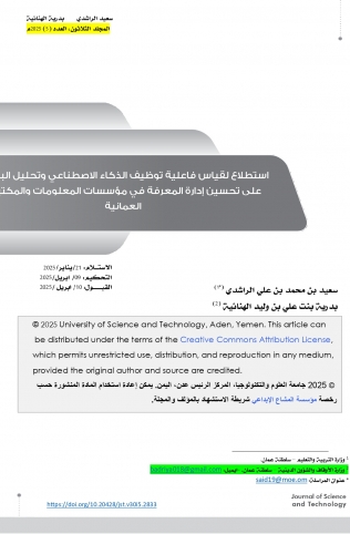 تهدف هذه الدراسة إلى استكشاف فاعلية تكامل الذكاء الاصطناعي وتحليل البيانات في تحسين إدارة المعرفة في مؤسسات المعلومات والمكتبات العمانية تواجه هذه المؤسسات تحديات في تبني أحدث التقنيات بسبب نقص الكفاءات والموارد. تسلط الدراسة الضوء على دور الذكاء الاصطناعي في تحسين عمليات التصنيف والبحث واسترجاع المعلومات، ودور تحليل البيانات في تعزيز اتخاذ القرارات باستخدام منهجية كمية تعتمد على استبيانات موجهة للعاملين والمستفيدين، تسعى الدراسة إلى تقديم توصيات التطوير استراتيجيات فعالة تعزز من كفاءة إدارة المعرفة وجودة الخدمات المقدمة من خلال اعتماد منهج التحليل الكمي، تم جمع بيانات عبر استبيانات موجهة إلى موظفي المكتبات والمستفيدين لتقييم تجربتهم مع الذكاء الاصطناعي وتحليل البيانات. أظهرت النتائج أن تطبيقات الذكاء الاصطناعي حسنت بشكل كبير من كفاءة التصنيف واسترجاع المعلومات، بينما كان لتحليل البيانات دور بارز في تعزيز اتخاذ القرارات المستنيرة. ومع ذلك، أظهرت الدراسة وجود بعض التحديات مثل البنية التحتية المحدودة وحاجة الموظفين إلى مزيد من التدريب. تشير النتائج إلى أن دمج الذكاء الاصطناعي وتحليل البيانات في عمليات المكتبات والمعلومات يمكن أن يسهم في تحسين الكفاءة التشغيلية وجودة الخدمات، ويساعد في دعم اتخاذ القرارات المبنية على البيانات. كما تقدم الدراسة توصيات لتجاوز التحديات الحالية بما في ذلك تحسين تدريب الموظفين، والاستثمار في البنية التحتية الرقمية، وتطوير استراتيجيات دمج فعالة في الختام، تكمن فوائد دمج الذكاء الاصطناعي وتحليل البيانات في تطوير خدمات المكتبات العمانية وتعزيز دورها في العصر الرقمي، ولكن يتطلب الأمر جهدًا منسقا للتغلب على العوائق التقنية والموارد المحدودة.