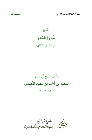 المؤلف : سعيد بن أحمد بن سعيد الكندي - أبي عيسى.