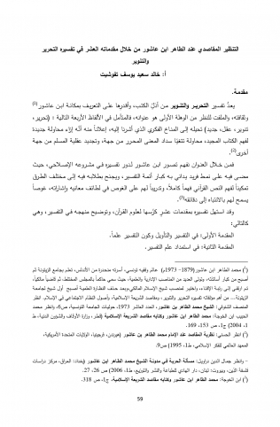 سعى البحث إلى التعرف على التنظير المقاصدي عند الطاهر ابن عاشور من خلال مقدماته العشر في تفسيره التحرير والتنوير. تطرق البحث إلى الدعوة إلى إنشاء علم المقاصد. متعرضا للتأسيس والتنظير للمقاصد من خلا المقدمات العشر لابن عاشور. متحدثا عن المقصد الأعلى من القرآن الكريم، موضحا المقاصد الأصلية التي جاء الق...