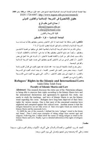 تكمن مشكلة هذا البحث فيما إذا كان اللاجئون يتمتعون بحقوقهم وفقا لما جـاءت بـه الشريعة الإسلامية والإعلانات والمواثيق الدولية لحقوق الإنسان؟ أم لا ؟ ويتأتى ذلك بدراسة تعاليم الشريعة الإسلامية وأحكامها؛ للنظر ف موقفها من قضية اللاجئـين وحقوقه ، وأيضا عدم تمتع اللاجئين بحقوقهم وفقا لما جاء في: الإعلانات والاتفاقيات الدولية ؛ وذلك بسبب إهمال كثير من الدول والأنظمة لقضية اللاجئين ؛ أو تآمرها على هذا الحق في بعض الأحيان ؛ أو لنقص الوعي من لدن اللاجئين أنفسهم بحقوقهم التي نصت عليها الشريعة الإسلامية والقوانين الوضعية . وحتى يخرج البحث بالنتيجة المرجوة منه ؛ فقد تناولت فيه مفهوم اللجوء في القرآن الكريم والسنة النبوية ، وبينت بعض صور اللجوء في العصور القديمة ، ثم بينت أسباب اللجوء في الشـريعة والقانون ، ثم انتهيت إلى بيان حقوق اللاجئين ، والأمور التي ينتهي بها اللجوء فـي (الشـريعة والقانون) بشيء من التفصيل