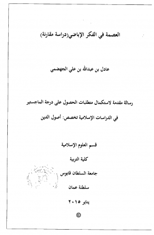 إن مفهوم العصمة مفهوم جاء به القرآن الكريم تارة بمنطوقه وتارة بمدلوله، وقد توسع هذا المفهوم نتيجة لتوسع الخلاف الفكري والسياسي بين المسلمين، وقد اشتهرت بعض الفرق الإسلامية بالتعمق في تأصيله وبحثه وهم الشيعة الإمامية، وقد قلت الكتابات الإباضية حول قضية العصمة مقارنة بما وجد في المذاهب الإسلامية الأخر...