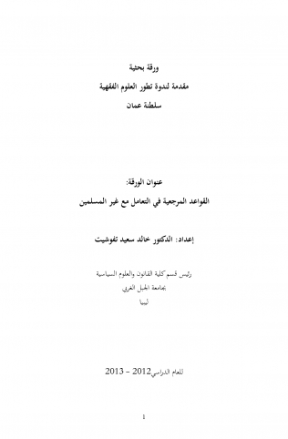 سلطنة عمان : وزارة الأوقاف والشؤون الدينية، أعمال ندوة تطور العلوم الفقهية: فقه رؤية العالم والعيش المشترك - المذاهب الفقهية والتجارب المعاصرة، 2013مـ.