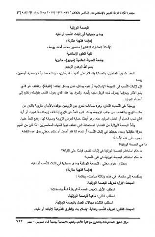 البصمة الوراثية ومدى حجيتها في إثبات النسب أو نفيه (دراسة فقهية مقارنة)