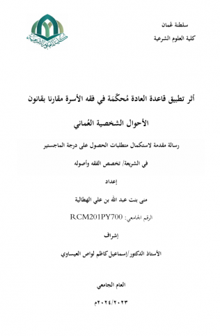 أثر تطبيق قاعدة العادة محكمة في فقه الأسرة مقارنا بقانون الأحوال الشخصية العماني